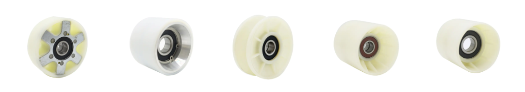 ยาง: ลูกกลิ้งยางมักจะดูดซับแรงกระแทกและทนต่อการสึกหรอได้ดี ลดเสียงรบกวนและยืดอายุการใช้งานของอุปกรณ์ได้อย่างมีประสิทธิภาพ เหมาะสำหรับการใช้งานที่มีโหลดปานกลางถึงต่ำ